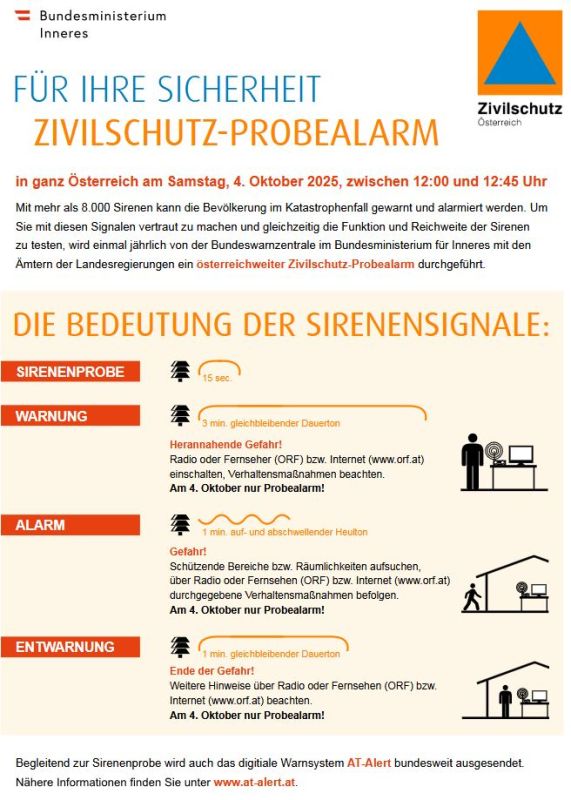 Am 4. Oktober findet der diesjährige Zivilschutz-Probealarm in ganz Österreich statt. Dabei werden die mehr als 8.000 Sirenen sowie AT-Alert ausgelöst.
